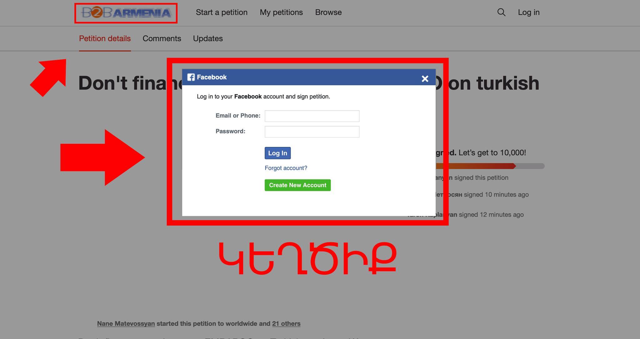 Այսպես, մուտք գործելով կայք՝ ընթերցողներին առաջարկվում է մուտքագրել էլեկտրոնային հասցեն և գաղտնաբառը։ Սխալվելու և այդ ինֆորմացիան հայտնելու դեպքում՝ Ձեր ֆեյսբուքյան էջը կհայտնվի հաքերների ձեռքում և նրանց տնօրինման տակ։