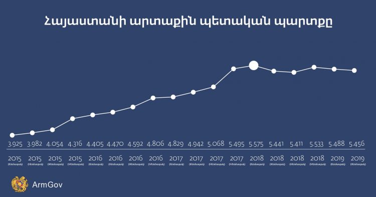 Կառավարության հրապարակած թվային գրաֆիկից նաև երևում է, որ 2015 թվականից սկսած ՀՀ արտաքին պետական պարտքը անդադար աճել է՝ 2018 թվականի առաջին եռամսյակին հասնելով իր ամենաբարձր ցուցանիշին՝ 5․575 մլրդ դոլարի։ Այս կետից հետո հստակ ուրվագծված է աճի տեմպի, ինչպես նաև ընդհանուր պարտքի նվազում։