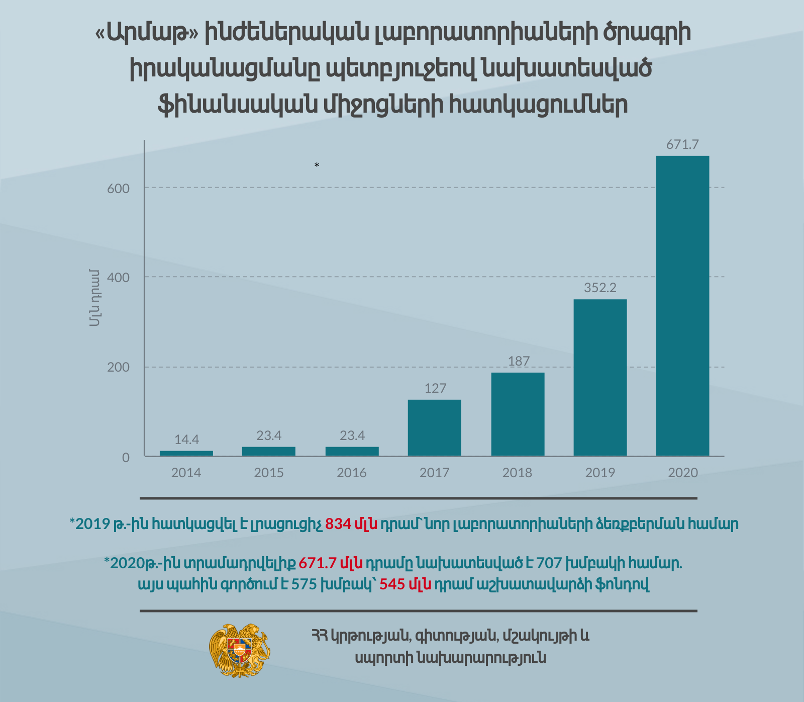4․Նախարարությունը շարունակում է ֆինանսավորել «Արմաթ» ինժեներական լաբորատորիաները
