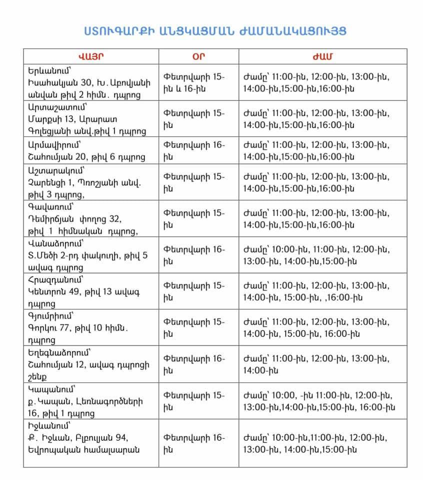 Ստուգարքի անցկացման ժամանակացույցը՝ ստորև: