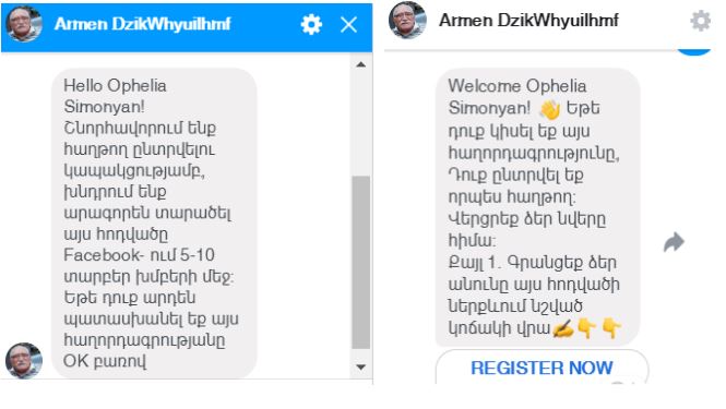 Գրառման մեջ Արմեն Ջիգարխանյանի անունից հանդես եկող էջը նշում է, թե փնտրում է 1500 մարդու՝ Հայաստանից, Ռուսաստանից, Ուկրաինայից և այլ տարածքներից, և կոչ անում մեկնաբանություններ թողնել գրառման տակ։ Այդ գործողությունից հետո օգտատերերը ստանում են անձնական հաղորդագրություններ՝ կոչով՝ տարածել հոդվածը 5-10 խմբերում։ Այնուհետև ևս մեկ նամակ՝ հղման տեսքով, որտեղ մարդիկ պետք է գրանցեն իրենց անձնական տվյալները, այնուհետև՝ բանկային քարտի տվյալները՝ հետագայում գումար ստանալու համար։ Կարճ ժամանակ անց խաբեբաները յուրացնում են բանկային քարտում առկա գումարը։