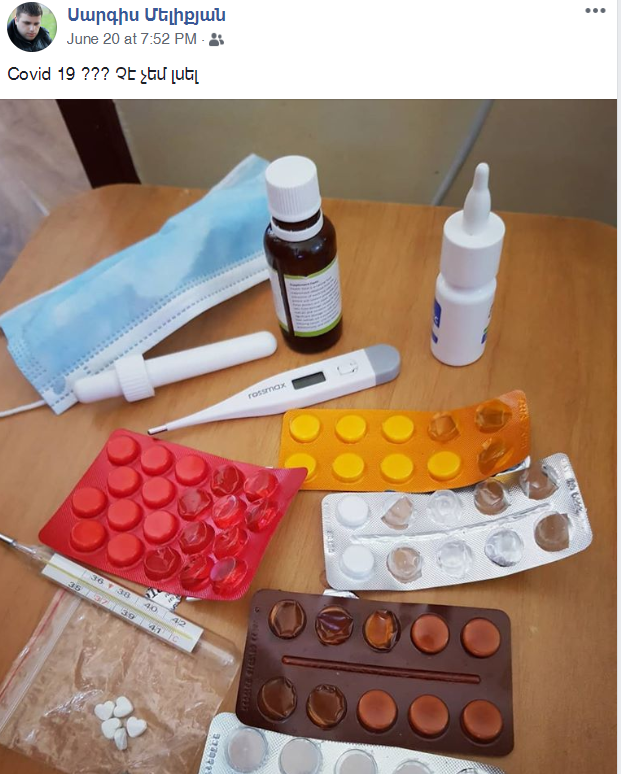 Հավելենք նաև, որ Գևորգ Գրիգորյանի կողմից գրառմանը կցված լուսանկարը ոչ թե արվել է բուժհաստատությունում, այլ վերցվել է Սարգիս Մելիքյան օգտատիրոջ ֆեյսբուքյան էջից։ Վերջինս մեզ հետ զրույցում հայտնեց, որ սննդային հավելանյութը գնել է դեղատնից՝ իր ցանկությամբ։