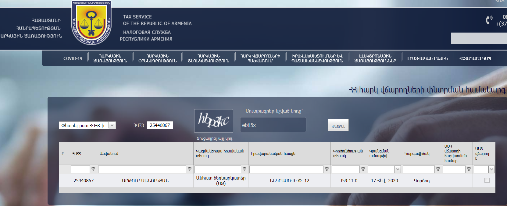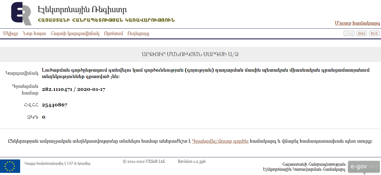 Նյութի հեղինակը որոնում է կատարել ՀՀ էլեկտրոնային ռեգիստրում՝ «e-register.am»-ում, սակայն չկարողանալով գտնել որևէ տեղեկություն՝ եզրակացրել է՝ ընկերության մասին տեղեկություններ գտնելը անհնար է։