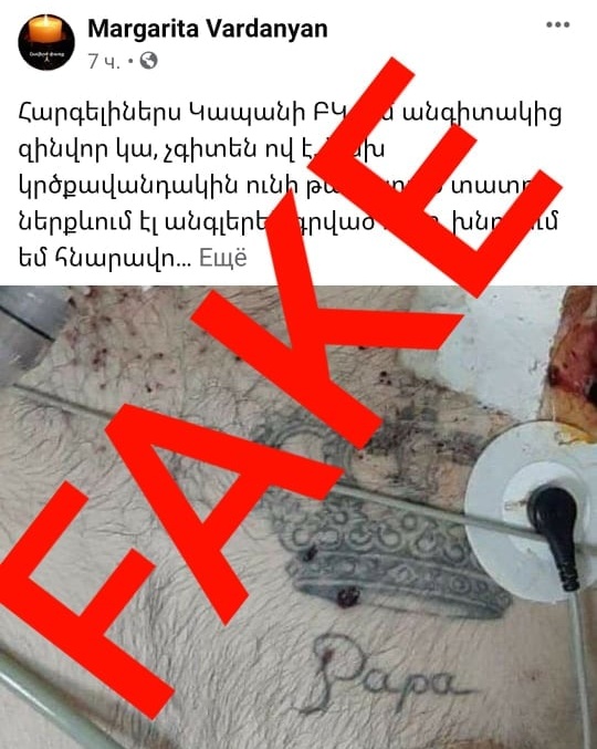 Կապանի բժշկական կենտրոնի անունից սոցիալական ցանցերում շրջանառվում է ԲԿ֊ում գտնվող 22 վիրավոր զինծառայողների ցուցակ, որը, բուժկենտրոնի փոխանցմամաբ, կեղծ է։