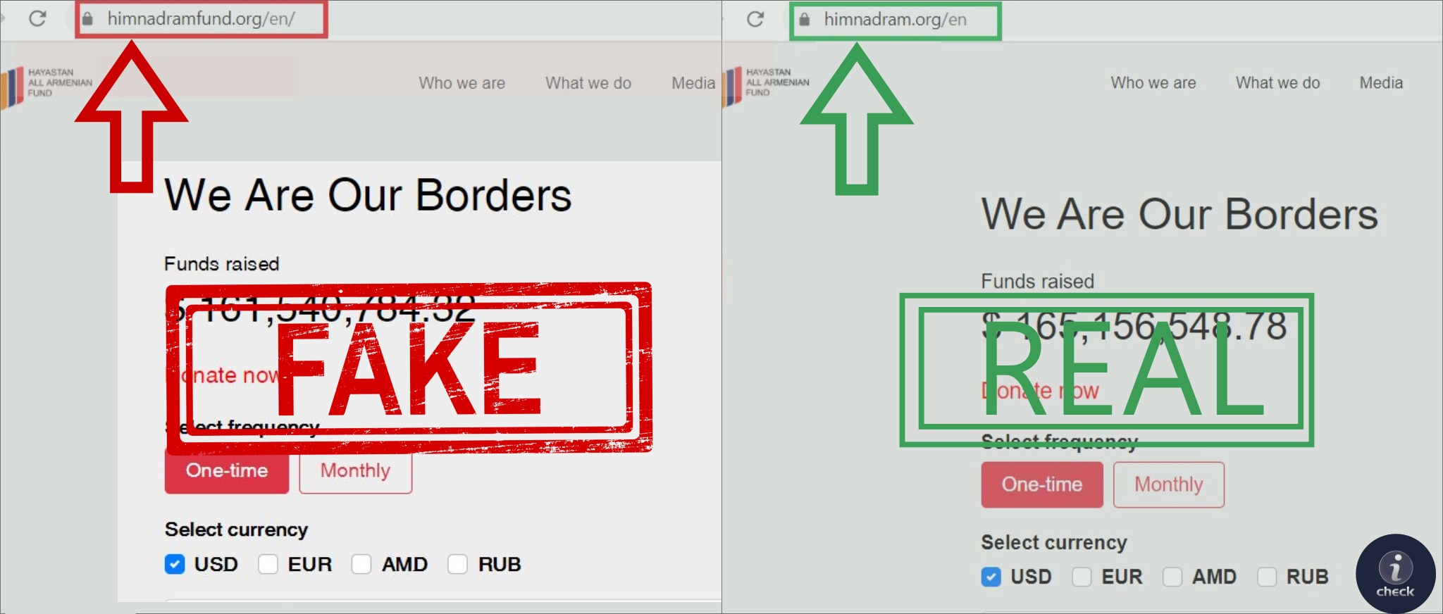 - Զգուշացեք նաև «Հայաստան» համահայկական հիմնադրամի նմանությամբ ստեղծված հերթական կեղծ կայքից՝ himnadramfund.org անունով։ Եվս մեկ անգամ հիշեցնում ենք, որ Համահայկական հիմնադրամի դոմեյն անունն է himnadram.org-ը։